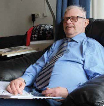 Begin dit jaar had Sieger graag mee willen doen aan de filmopnames voor de campagne ‘(H)erken jij dementie bij mensen met een verstandelijke beperking?’ Maar daar kwam iets tussen. “Geen idee hoe het is gebeurd, maar ineens lag ik op de grond, tussen de stoel en de kast. Het duurde wel uren voordat ze doorhadden wat er met me aan de hand was”, zegt hij. Door een val in zijn kamer brak Sieger zijn heup. Er volgde een operatie en hij moest maandenlang revalideren. Onder andere in een centrum voor geriatrische patiënten. “Dat was vreselijk. Al die ouwe mensen, daar voelde ik me niet thuis.”