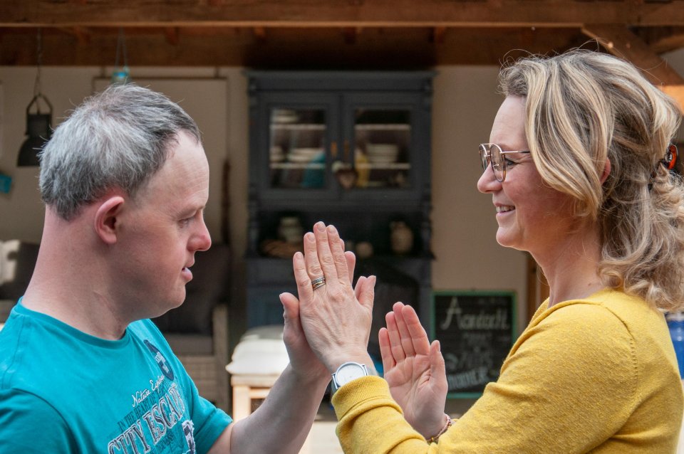 Toch werd het vermoeden van dementie groter. Yvonne is meer gaan lezen over een verstandelijke beperking en dementie en herkende zij steeds meer signalen. Maar het gesprek over dementie lag gevoelig in de familie. Yvonne: “Je hoopt op iets wat genezen kan worden. Rien is natuurlijk ook nog jong. Om de oorzaak te achterhalen bezochten we regelmatig de huisarts. Na een tijd is via de huisarts uiteindelijk op de downpoli (een polikliniek voor volwassenen met Downsyndroom, red.) de diagnose Alzheimer gesteld.”