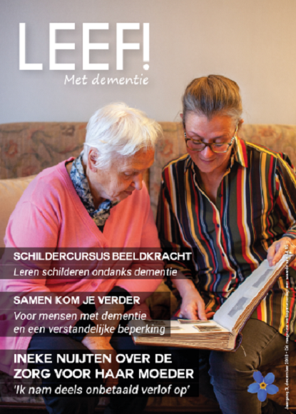 In het magazine ‘LEEF! Met dementie’ lees je persoonlijke en inspirerende verhalen over mensen met dementie en hun naasten, waarin ze vertellen over de mogelijkheden die er nog wél zijn! Naast deze verhalen kun je alles lezen over de nieuwste ontwikkelingen rondom dementie, en hebben we een aantal prikkelende columns en interessante boekentips voor je! We willen het taboe rondom dementie doorbreken en mensen met dementie een podium geven.