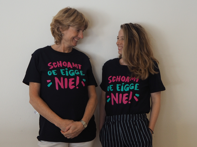 Als je zelf, of in jouw omgeving te maken hebt met dementie is dat niet iets waar je je voor zou moeten schamen. Helaas heerst er nog steeds een taboe, dat we alleen met z’n allen kunnen doorbreken! Daarom hebben wij in samenwerking met studenten van het Sint Lucas en Cheaque T-shirts ontwikkeld die bijdragen aan het doorbreken van het taboe rond dementie. De T-shirts (kleur blauw) met de belangrijke boodschap: “Schoamt oe eigge nie!” zijn vanaf nu verkrijgbaar. Draag jij ook bij aan een dementievriendelijk Brabant?